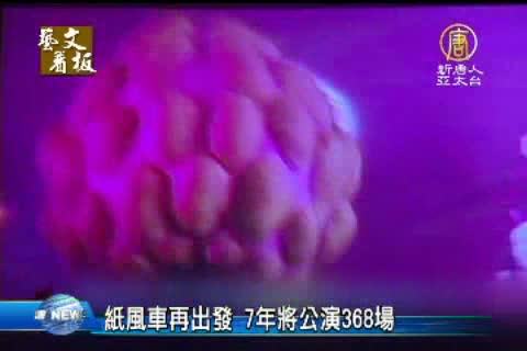 【新唐人亞太台2013年1月13日訊】一年多前,才結束全台巡迴演出的「紙風車劇團」,這一次,要用7年的時間,進行368場公演,晚間第一場,雖然天公不作美,雨勢不斷,但阻擋不了大家期盼的心,5、6千人冒著風雨,在兩廳院的廣場看表演,許多家長還自掏腰包來贊助經費。