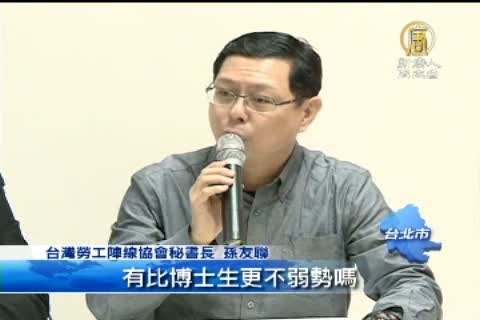 台灣勞工陣線協會秘書長 孫友聯:「今天補充保費更結構化的不公平的問題,請問失業勞工有比博士生更不弱勢嗎?請問,家庭主婦,在家庭照顧者,有比所謂的大學生更不弱勢嗎?」
