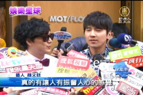 【新唐人亞太台2013年1月15日訊】蕭煌奇出新專輯,這次主打MV找來趙又廷擔任男主角,飾演花店老闆,與女主角有一段浪漫愛情故事。這次趙又廷義氣演出不收任何費用,蕭煌奇為了表達感謝之 意,現場來一段馬殺雞 。