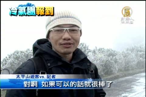 一大早,太平山國家森林遊樂區,就湧進大批遊客,上山欣賞美景,樹枝上布滿霧淞,成了銀色世界,有爸爸帶著剛考完期末考的小朋友,想用雙手堆出小雪人。