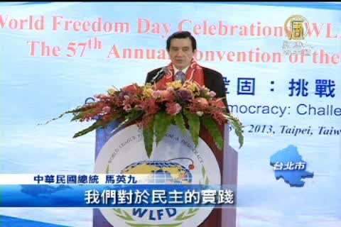 【新唐人亞太台2013年1月23日訊】新聞一開始帶您看到,今天是1月23日 世界自由日,馬總統上午出席世界自由日慶祝大會致詞時提到,希望兩岸的對話,在經貿與文化之外,也能拓展到人權法治的領域。 他希望通過台灣對民主的實踐,讓對岸了解,民主制度也能在中華文化的土壤中生根。