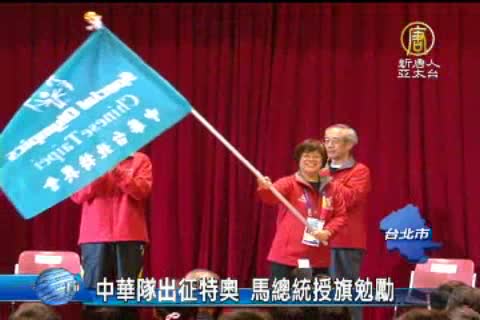 【新唐人亞太台2013年1月24日訊】2013特殊奧運1月29起將在南韓平昌登場。克服自然條件的限制,經過一年多的辛苦訓練,60位選手將代表台灣出征。星期四早上,總統馬英九出席授旗典禮為選手打氣,期許選手們能勇奪佳績。