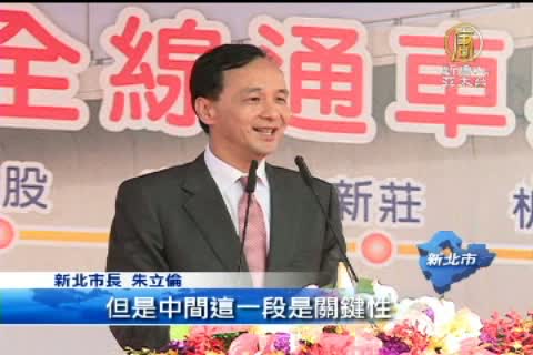 新北市長 朱立倫:「第一個階段沒有錯跟我們的國道一號通了,第二個階段等於是跟國道三號通了,但是中間這一段是關鍵性,這個關鍵性通了之後,讓全線通車。」