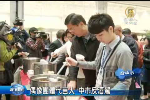 【新唐人亞太台2013年1月30日訊】過年就快到了,走春拜訪好友聚餐不免喝酒助興,為了防止酒駕事故一再發生,台中市府30號在市政大樓舉辦「醉不上道」防制酒駕記者會,請來了「Super131」義務擔任反酒駕代言人。