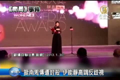 【新唐人亞太台2013年1月31日訊】藝人伊能靜在「南周事件」後,昨天在北京首度現身,她接受一項頒獎時高調反擊網路上批評她的人。她說,把關心社會時事的女藝人貼上標籤,就是一種歧視。