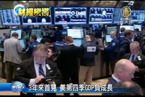 【新唐人亞太台2013年2月1日訊】美國商業部週三(30日)公布的數據顯示,去年第4季度GDP意外下降0.1%,是經3年多來的首次下降,主要是受到政府支出大幅下降,企業庫存減少的影響。不過,消費者支出和就業增長提高,顯示仍然有一些支持復甦的基本力量,經濟學家對經濟前景表示樂觀。