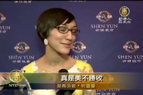 觀眾 斯蒂芬妮‧柯靈曼:「(神韻演出)絕對的美麗無比!我自己本來也跳舞。我曾跳了十年的舞,但我認為(神韻)簡直精美絕倫!我最喜愛的節目之一是《彝韻神舞》,演員們身著五彩的長裙,我覺得真漂亮!她們旋轉舞動時像撐開的多彩的傘。真是美不勝收!」