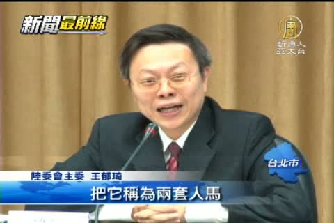 陸委會主委 王郁琦:「陸委會的官員,應該會同時進駐到這個辦事機構內,應該會,因為這樣才能夠符合對等原則,表示我方官員也到大陸去,進行服務國人的工作,大陸的對台工作體系,一般人稱為,一套人馬兩塊招牌,我把我們這個體系,把它稱為兩套人馬,一塊招牌」