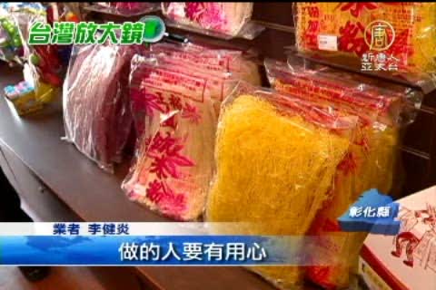 【新唐人亞太台2013年2月6日訊】位於彰化芬園鄉楓坑村,是台灣傳統製作米粉的聚落,李健炎自幼年就開始隨著父親製作米粉,已有30多年了,夫婦兩人不畏艱苦,繼承父親留下的傳統產業,米粉品質優,行銷國內外,使台灣傳統產業蓬勃發展。