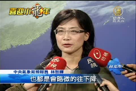 【新唐人亞太台2013年2月15日訊】今天大年初六,相信觀眾朋友一定明顯感到天氣變冷了,受到鋒面通過及東北季風增強的影響,北部清晨最低溫落到14度,還飄著細雨,氣象局預估,這樣又濕又涼的天氣會持續到明天星期六,到了星期天之後,就會回暖。下個星期一上班族回到工作崗位,西半部更可以看見陽光,只有東半部地區有一些零星的降雨。