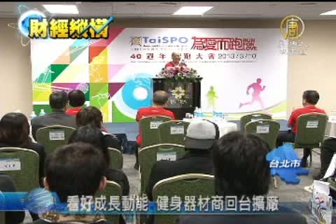 【新唐人亞太台2013年2月19日訊】亞洲最大運動用品展「台北國際體育用品展」3月份即將登場,今年邁入第四十屆。主辦單位外貿協會特別和知名健身器材公司策畫路跑活動做公益。看好台灣成長動能,健身器材公司董事長羅崑泉透露,已經決定把高階健身器材的生產線,從美國移回台灣,並擴增通路,可望釋出400個工作職缺。