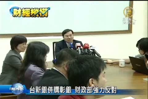 【新唐人亞太台2013年2月21日訊】來看到今天的財經焦點。台新銀昨天(20日)召開臨時董事會,通過併入彰銀一案,結果財政部不領情,還強力反對,讓合併案還沒推就破局,兩家銀行今天的股價,都表現欠佳,盤中分別下跌2到3% 。
