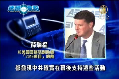 【新唐人亞太台2013年2月23日訊】繼續帶您關心,本週美國媒體大幅報導,美國遭受的網路駭客攻擊多與中共軍方有關,並點名長期跟蹤後發現的攻擊源頭是總參三部二局61398部隊。前美國國務院副助卿、「2049項目」總裁薛瑞福(Randy Schriver)指出,他們在兩年前就已發表了相關報告,指出中共軍方、尤其是總參三部在中共指揮下,所進行的網路間諜活動。