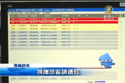 【新唐人亞太台2013年2月25日訊】視障朋友搭乘大眾交通工具,不管是走上電扶梯或是進出捷運站都需要站務人員的協助,不過有時站務人員繁忙,記得接人進站,卻忘了要接人出站,為了避免漏接情形,北捷自行研發一套新的資訊系統。