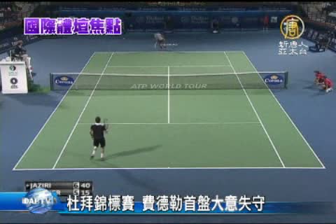 【新唐人亞太台2013年2月26日訊】接下來關心世界男網焦點,尋求第六座杜拜錦標賽冠軍盃的第2種子費德勒,首輪遭遇排名第128種子的突尼西亞選手加茲里,第一盤瑞士特快車費德勒大意失守,竟然以5比7輸掉一盤,還好他及時回神,二三盤只讓對手拿下兩局,順利以5-7、6-0及6-2晉級。