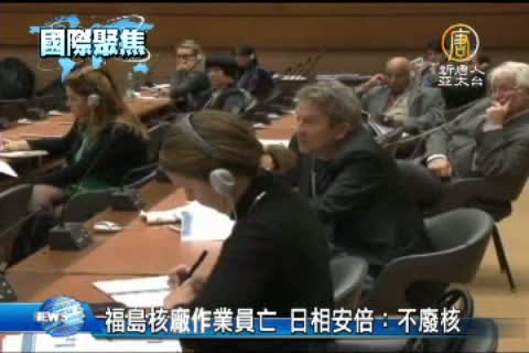 【新唐人亞太台2013年3月1日訊】就在台灣核四興建爭議不斷的這個時候,也要同時帶您來關心,在東京電力福島第一核電廠工作的1名50多歲男性作業員,在這個星期三(2/27)送醫不治死亡。世界衛生組織星期四(2/28 )就警告,兩年前發生核洩漏事故的日本福島第一核電站,廠內救援人員及附近居民今後患癌症的風險,將會較高;不過同一天,日本首相安倍晉三,則是在施政方針演說中表示,減核但不廢核 。