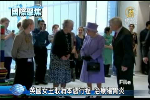 【新唐人亞太台2013年3月4日訊】英國白金漢宮發言人表示,女王伊麗莎白二世因腸胃炎症狀3號早上送醫,接受預防性評估,可能住院數日。未來一週的活動已經取消或延後,包括預定訪問羅馬的行程。