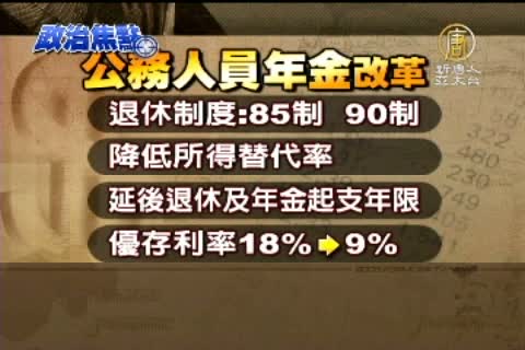 抱怨行政院先斬後奏,暗批行政機關美其名溝通,其實只是為了爭取黨籍立委護航,因為日前銓敘部公布的年金改革方案,包括退休制度由85制改為90制,降低所得替代率和延後退休及年金起支年限,以及逐年將優存利率由18%改為9%,都引發輿論反彈。