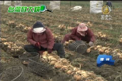 【新唐人亞太台2013年3月4日訊】去年的洋蔥價格慘跌,今年雲林東勢鄉農民種植洋蔥的面積也大為減少,大多集中在復興、龍潭及嘉隆等村。不過,每分地採收4000到7000公斤的產量,可算是洋蔥的豐收年。讓我們一起去看看農民忙碌收成的景象。