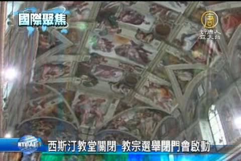 【新唐人亞太台2013年3月6日訊】梵蒂岡的西斯汀教堂即日起對外關閉,表示教宗選舉的閉門會議即將展開,根據推測,閉門會議可能在11日開始。目前為止,115位有選舉權的樞機主教中,還有12位尚未抵達梵蒂岡。也有主教表示,在閉門秘密會議開始之前,應該在樞機全體會議中進行廣泛討論。