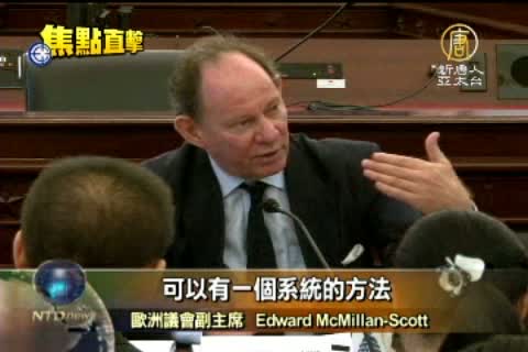 【新唐人亞太台2013年3月7日訊】今天的焦點直擊,帶您關注國際社會對於中共迫害人權,有最新的積極態度。歐盟議會副主席麥克米蘭‧史考特日前訪美。他在美國國會內的研討會上表示,此行目的之一是希望歐盟和新的歐巴馬政府聯合,將中共人權迫害者列入名單,禁止他們進入美國、歐盟等國家。他還說,中共迫害人權,未來將受到國際法庭的嚴懲。