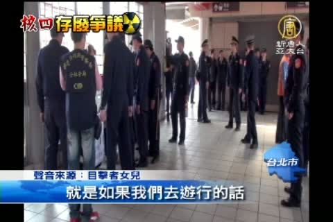 【新唐人亞太台2013年3月7日訊】星期六反核大遊行即將登場,值得注意的是,台北市士林分局昨天(6號)針對反核人士進行「反暴演練」,模擬反核民眾臥軌、癱瘓月台,遭到警方團團包圍,引起路過民眾反感,認為是把反核人士當成暴民,向議員投訴。