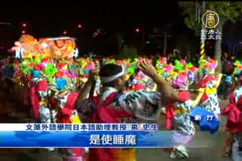 【新唐人亞太台2013年3月11日訊】今年的新竹台灣燈會在週日(10號)拉下帷幕,觀看人數預估突破1200萬人次,而新竹縣府為了不讓還沒見識到日本「龍王」睡魔風采的遊客失望,在燈會結束前還特地加演的兩場踩街秀,儘管沒有日本雜子團隨隊表演,但現場開放200名素人遊客親自上場體驗,相當熱鬧有趣,一塊兒來看看。