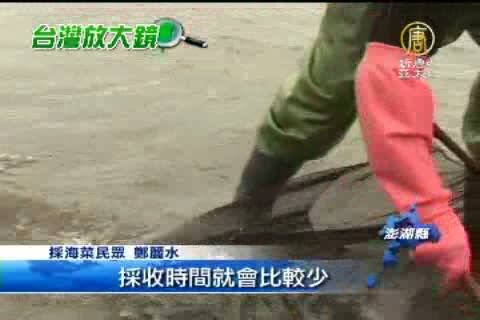 採海菜民眾 鄭麗水:「若潮汐為大潮時,採收時間就會比較少,若今天為潮汐為小潮時,採收時間就會比較長一點。」