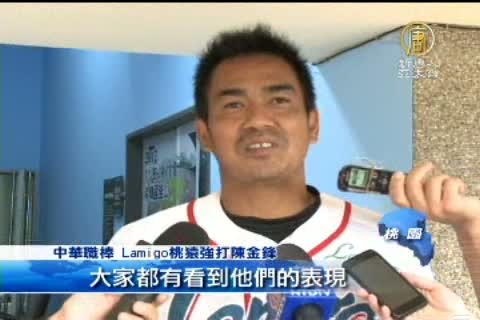 中華職棒 Lamigo桃猿強打陳金鋒:「打這麼好我還能甚麼看法,就很好了啊,大家都有看到他們的表現,他們很努力;期許就是越來越好,越多球迷進來看我們比賽。」