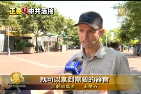 活動組織者 史蒂芬:「很多的澳洲人到中國去接受器官移植,因為那裡可以既便宜又快找到供體。但是,我們必須停止這種行為,停止他們這樣作。因為他們很有可能從法輪功學員或是其他無辜的受害者身上摘取器官,導致他們被虐殺。」