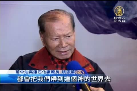 高齡88歲的前中油化工廠高雄廠長姚愈華和夫人一同觀賞神韻晚會,他說,看神韻,彷彿去了一趟神的世界。