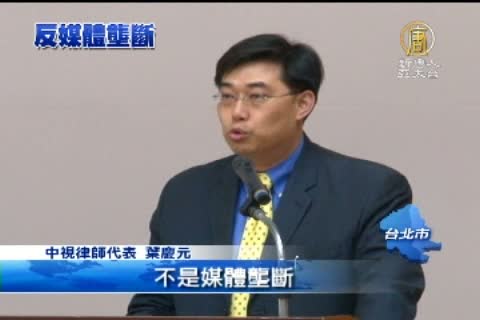中視律師代表 葉慶元:「我們實際上現在真正媒體的困境是什麼,不是媒體壟斷,而是過度競爭,也就是說在目前媒體過度競爭的情況下,適度的媒體整合,正是回到常軌的不二法門,但是NCC今天選擇的方式卻是禁止媒體整合。」
