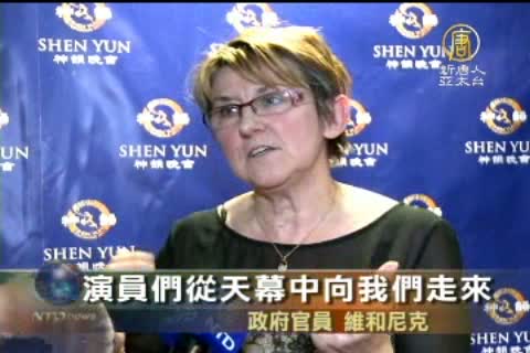 法國政府官員 維和尼克:「從演出一開始我就淚流滿面,情不自禁,因為我有信仰,神韻讓我更加接近精神世界和對神的信念。我流淚,因為有一股強大的能量深深觸動我的心靈。 最後說聲謝謝,非常非常的感謝所有這些藝術家。」