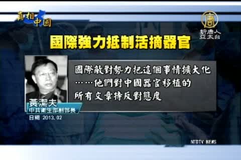 隨著國際醫界抵制行動擴大,今年二月底,中共衛生部長黃潔夫在會議上坦承,「在世界上,中國是唯一系統利用死囚器官的國家」。但他批評,「國際敵對勢力把這個事情擴大化,……他們對中國器官移植的所有文章持反對態度。」 。