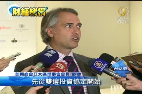 美國商會亞太區理事會會長 歐康:「要達到(TPP)這個目標,你要先從TIFA開始,先從雙邊投資協定開始,所以我們希望雙管齊下,所以我們向來都鼓勵發展各個層級的貿易協定,所以我們對此非常樂見,同時我們也繼續推動TPP。」