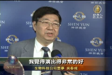 生物科技公司董事 吳春成:「很想說有點目瞪口呆,很surprised,很驚訝。一定要來,至少要來看一次神韻,因為她們不管在音樂在舞蹈,還有在這個表現的這個,文化這一方面的有些的,我是覺得都值得來欣賞。」