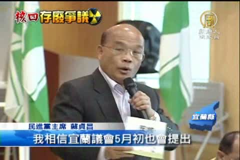 台下,近百位宜蘭在地的民進黨支持者和黨公職,聚精會神,不時仔細翻閱手上的反核手冊,台上,黨主席蘇貞昌賣力宣傳反核理念,面對國民黨拋出的核四公投,民進黨一面接招,也不忘出招。