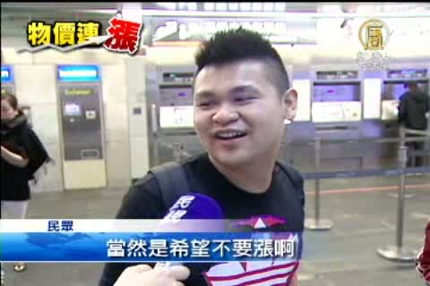 【新唐人亞太台2013年3月24日訊】常搭高鐵的民眾注意了,由於今年物價漲幅逾3%,達到高鐵的漲價門檻,從下月起,交通部將核定高鐵票價,最高有9%的調漲空間,換算下來,如果從台北搭到高雄來回票,民眾就必須多付280元,不過面對漲價消息,高鐵低調的說,目前還在評估中。