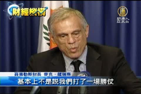 【新唐人亞太台2013年3月25日訊】來關心賽普勒斯危機,目前終於暫時有所進展!歐盟領袖、歐洲央行、國際貨幣基金組織,從昨天晚上開始和賽普勒斯進行馬拉松談判,搶在週一期限前達成紓困協議,免於立即破產。不過,儘管如此,賽普勒斯退出歐元區的危機仍然存在。