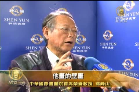 中華國際書畫院首席榮譽教授 翁峰山:「我在研究藝術的時候,唐朝吳道子他畫的壁畫,從古至今都,讚譽有佳就是說,他畫的壁畫,壁畫應該是死的嘛,可是人家滿個牆壁好像風在動,那時候 我在研究,感受不出來,那今天看了以後,原來就是這樣,那舞姿甚麼都滿地風動,是不是。」