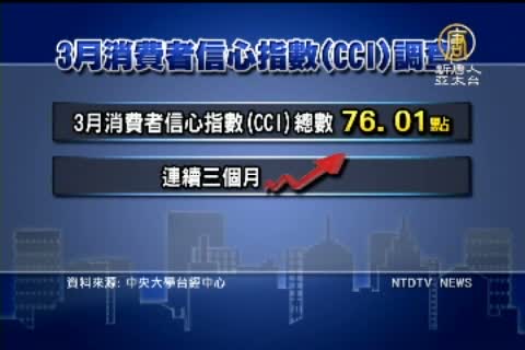 另外,中央大學台經中心,今天也公布3月消費者信心指數(CCI)調查,總數76.01點,已經是連續三個月上升,的確顯示民眾對消費及投資的信心逐漸回升。