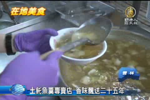 【新唐人亞太台2013年3月29日訊】雲林斗六有一家經營二十五年的土魠魚羹專賣店,店裏的招牌有土魠魚羹,還有令顧客難忘的泡菜,第一代負責人郭李美珠的經營理念,就是態度親切和用心料理,所以顧客的回流率很高,現在跟著鏡頭一塊去看看,到底有多美味。