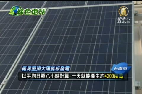 【新唐人亞太台2013年3月30日訊】近期台南市經發局推出不一樣的節省能源方案,在能源局核定下,有不少台南企業主將自己廠房屋頂裝上太陽能板,只要有日照,就會產生電力,不但得到市府的政策補助,還可以將電力,賣回台電。