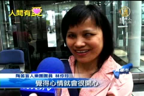 陶笛盲人樂團團員 林伶玲:「我覺得陶笛好帶,音色也很漂亮,如果說妳自己獨立一個人,無聊的時候也可以拿起來吹一吹,覺得心情就會很開心。」
