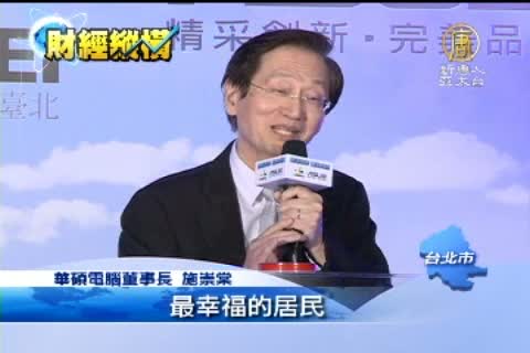 華碩電腦董事長 施崇棠:「共同把這個台北市,打造成一個,領先全球的雲端城市,我真的是,而且我們可以提升整個在,這個台灣在國際的這個競爭力,讓這個台北人,都能夠變成全世界,最幸福的居民。」