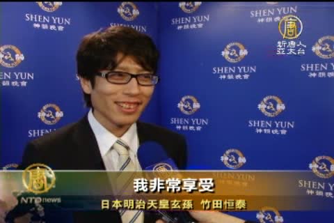【新唐人亞太台2013年4月2日訊】美國神韻藝術團五月份即在前往日本巡迴演出,而日本明治天皇的玄孫,也就是現任皇太子德仁親王的堂弟竹田恆泰,正在台灣訪問,週六下午,他觀賞美國神韻巡迴藝術團在桃園展演中心的演出。他說從沒看過這樣豐富的演出內涵,融合華夏五千年文化歷史。回到日本後,一定會將神韻演出的訊息推薦給皇室親友們知道。