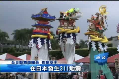 【新唐人亞太台2013年4月9日訊】2013年第2屆台日鼓舞節在南投中興新村熱鬧登場,有充滿日本傳統藝術的相馬樓舞娘、三颯舞、秋田竿燈等十一個團體不畏風雨演出,讓人大開眼界。日本311地震後,台灣踴躍捐助日本,而鼓舞節感恩表演,更是象徵台日友誼常在 。