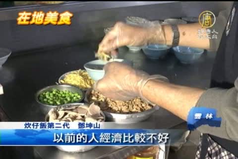 【新唐人亞太台2013年4月11日訊】雲林斗六有很多知名小吃,有點類似滷肉飯的「炊仔飯」,食材十分豐富,有青碗豆、魚丸、豬絞肉跟蛋絲舖在碗底,再用熟米飯蓋上去,蒸熟後淋上滷汁,配色刺激食慾,味道獨特,是格外讓斗六人懷念的老味道。