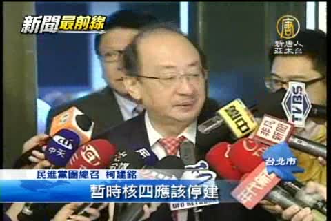 「暫時核四應該停建,但是國民黨提出這種詐術公投,我們講很多次,我們一定會正面迎戰,今天我想有很多事要談清楚,大家再來正面迎戰。」