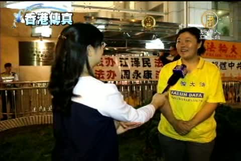香港法輪功學員孔海燕:遊客反映情況來說,經常聽到遊客喊"法輪大法好",公開喊,而且我勸退(退出中共黨團隊)也愈來愈容易,基本上現在早上2個多小時能勸退80多個人退黨團隊,我看到人心的變化。